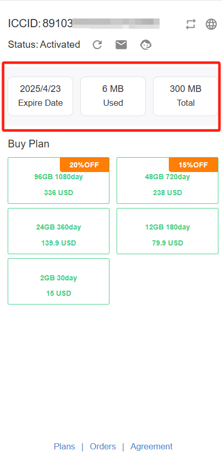 There are two ways to check the traffic usage. One is to query it online on the website, and the other is to query it through the EIOTCLUB APP.