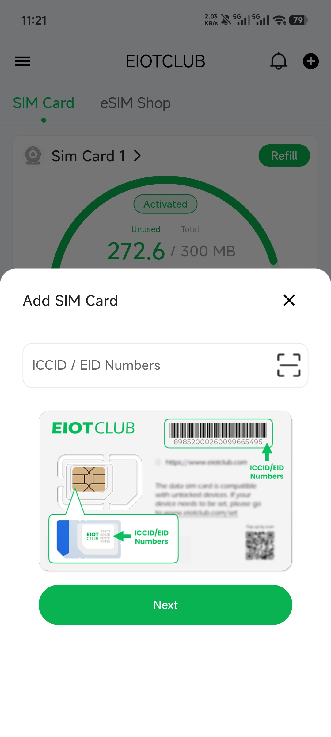 - Enter you correct ICCID in the EIOTCLUB APP